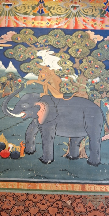 La fable des « Quatre amis » qui évoque la solidarité entre un oiseau, un lapin, un singe et un éléphant se soutenant mutuellement pour cueillir les fruits de l’arbre est souvent présentée comme le symbole de l’ambition du bonheur prônée par le Bhoutan.