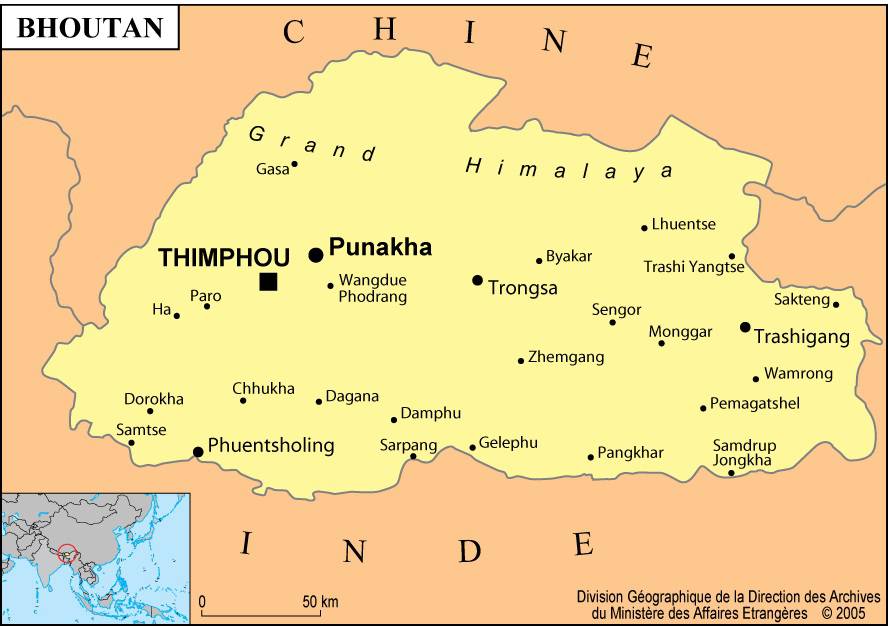 Bordé par la chaîne de l’Himalaya, ce pays offre de magnifiques paysages vallonnés, couverts de forêts, et sommets dépassant les 7 000 mètres. Son économie, avec une agriculture encore très présente, tire ses ressources externes largement de la vente de l’hydroélectricité à son voisin indien et du tourisme encadré, mais encouragé, car permettant de financer et de rendre gratuit, aux dires de ses habitants, l’éducation et la santé.