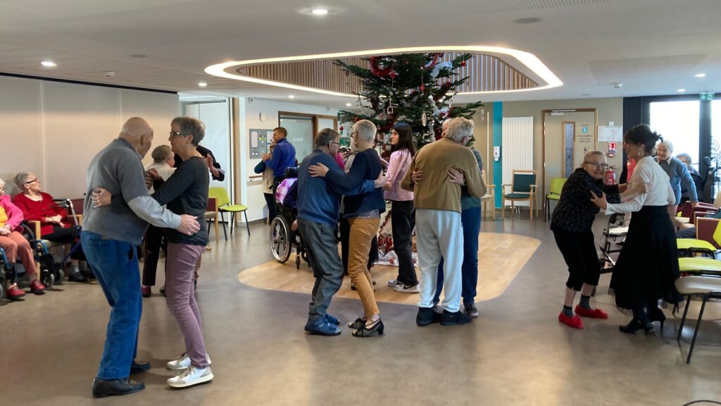 Native de l’Argentine, patrie de cette danse inspirante qu’est le Tango, cette belle musique porteuse d’émotions, pas nécessairement familière pour nos résidents bretons, résonne dans la petite salle de l’établissement où elle est à l’honneur.